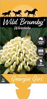 Telopea or Waratah Wild Brumby Georgie Girl has green foliage and stunning, bright yellow flowers in spring. Perfect for low-maintenance and native-inspired gardens, this hardy native is also eye-catching in decorative pots and containers. It is drought & frost tolerant when established, and perfect for attracting native wildlife.
